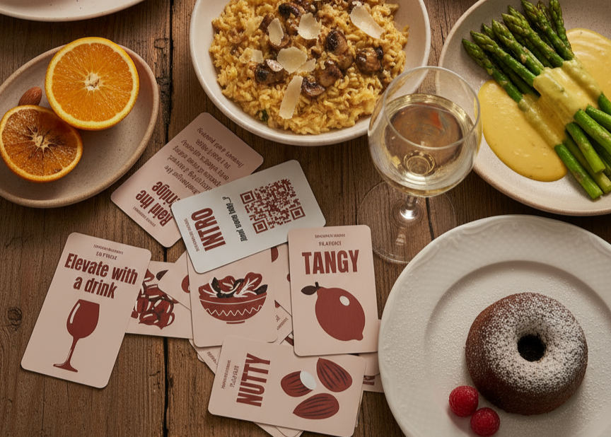 - Mood-Matched Meals – dishes that reflect the vibe of your cards (comfort = hearty lasagne, fresh = summer salad bowls, indulgent = creamy mushroom risotto).